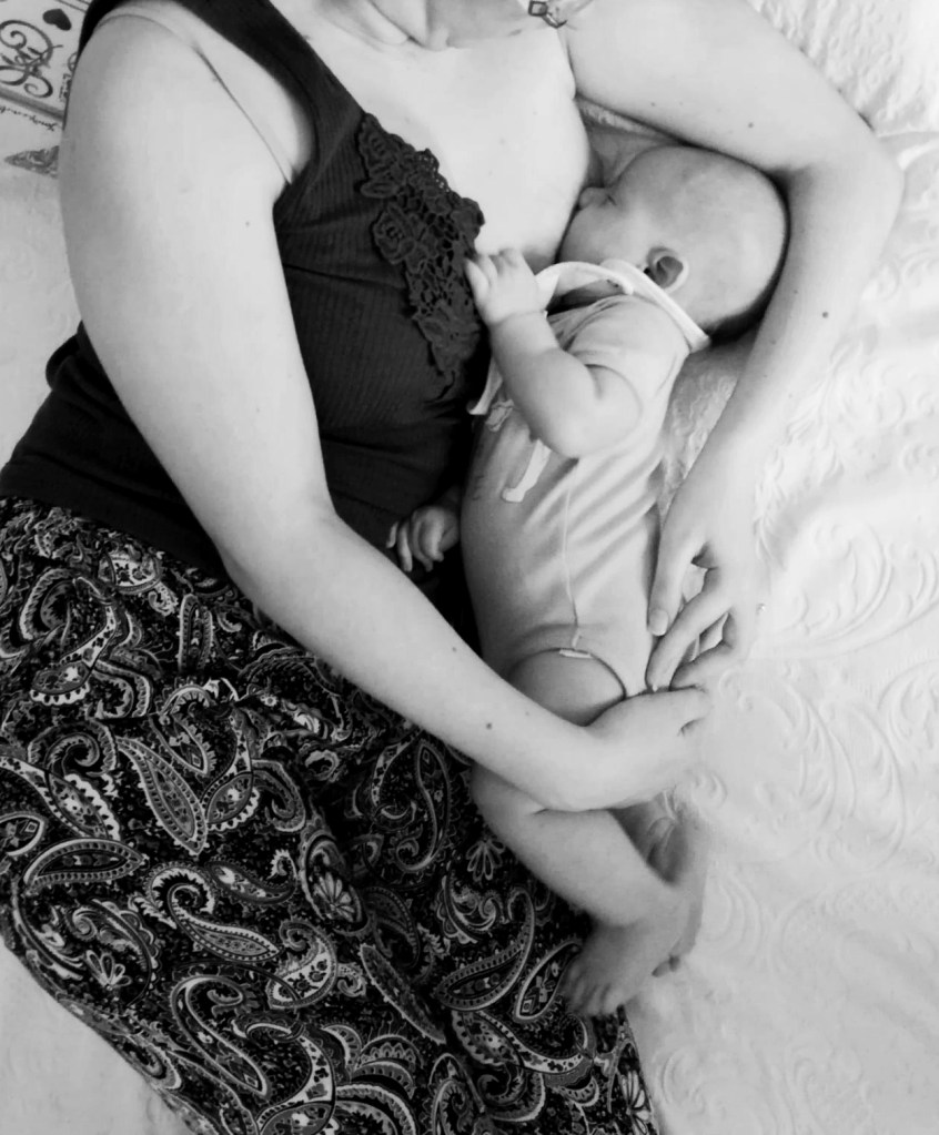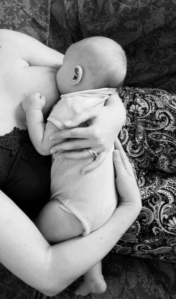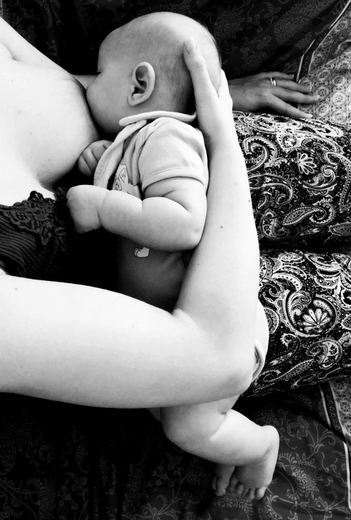 - Bimbo rivolto verso il seno, col naso di fronte al capezzolo.