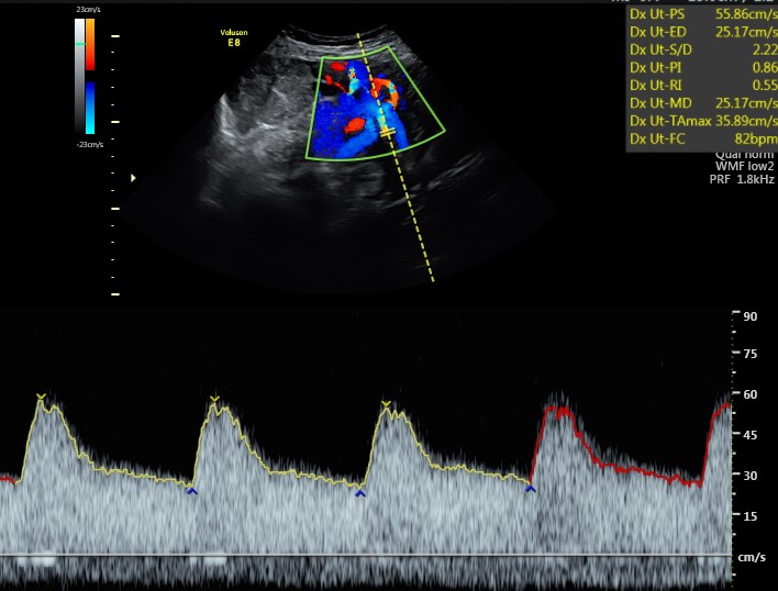 Non solo il tesoro è oggetto di valutazione, ma in questa ecografia lo è anche la mamma. Infatti, per vedere se siamo dei buoni incubatori, è importante la valutazione della resistenza delle arterie uterine.