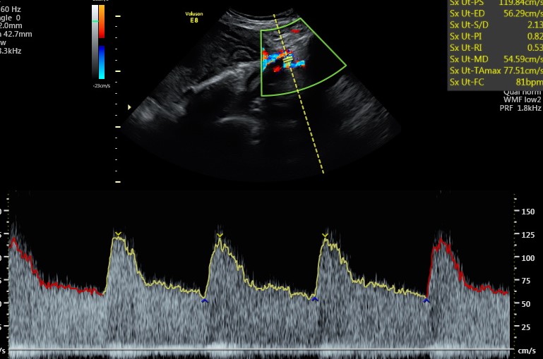 A livello ecografico non ci sono particolari controlli da fare, se non quello della arterie uterine se all’ecografia morfologica erano ancora un po’ vasocostrette.